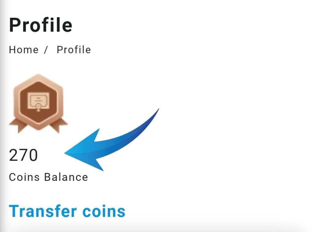 Coin balance is displayed on profile also on the Coins Withdrawal page.