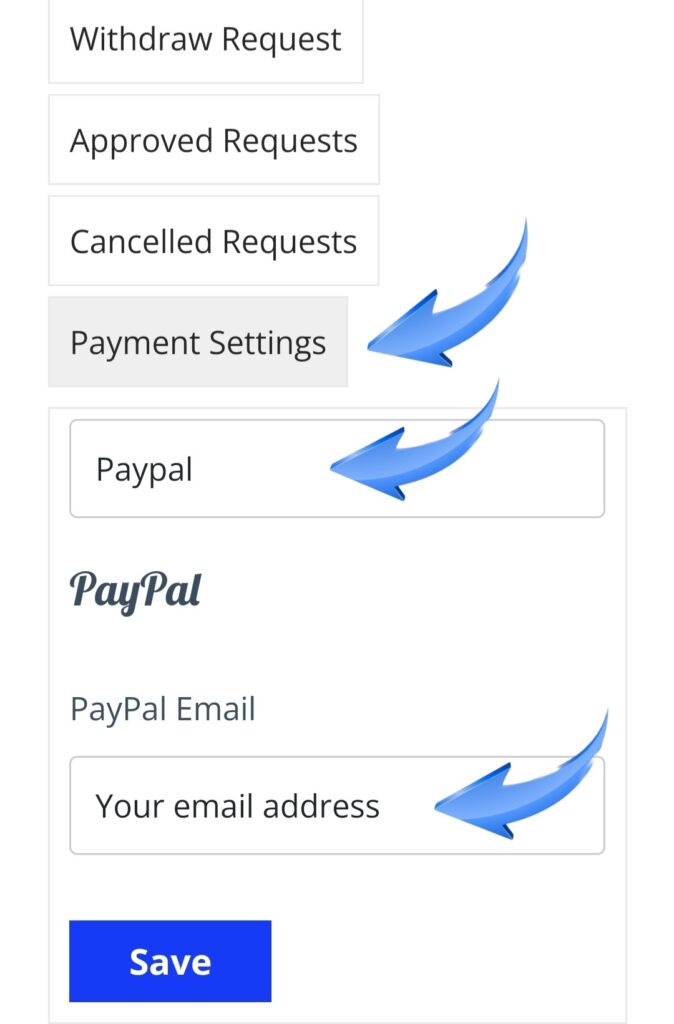 Go to Payment Settings. Choose one of two options, Paypal or Bank transfer. As Paypal is more commonly preferred and faster. Be sure that your Paypal email address is correct. Then click save.
